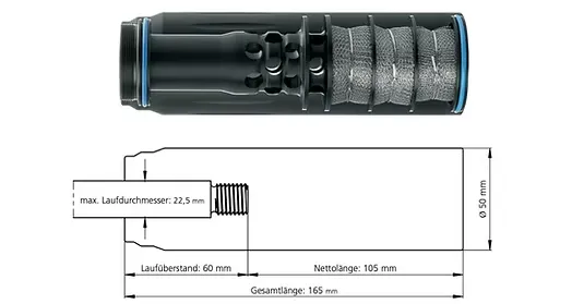 Die wichtigste Anforderung an einen Schalldämpfer im jagdlichen Einsatz ist eine möglichst effektive Dämpfung des Mündungsknalls zum Schutz des Gehörs von Mensch und Hund.