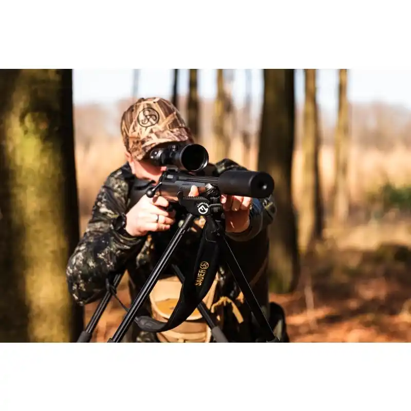 Die gummierte 2-Punktauflage sorgt für eine ruhige und stabile Schussposition, selbst auf Distanzen von über 200 Metern. Die breite Auflagefläche erlaubt ein gleichmäßiges Mitziehen der Waffe bei bewegendem Wild, während die höhenverstellbare Konstruktion von 95 bis 175 cm maximale Flexibilität in verschiedenen Geländesituationen bietet.
