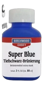 Super-Blue ist die schwärzeste Brünierung von Birchwood Casey. Es handelt sich um ein sehr stark konzentriertes Brüniermittel für Komplett-Brünierungen oder Ausbesserungen. Die Super-Blue-Brünierung ist besonders für die Brünierung von hochglanzpoliertem Stahl und bei Legierungen aus gehärtetem Stahl mit Nickelanteilen und Chromanteilen geeignet.