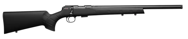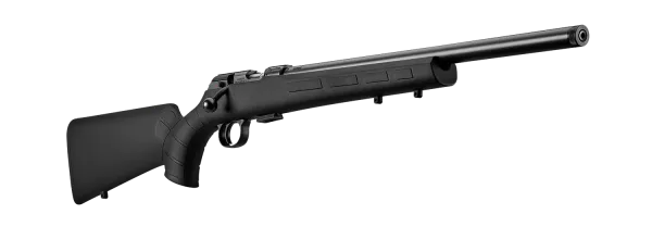 Das Submodell Varmint Synthetic zeichnet sich durch sein robustes und dennoch leichtes Design aus. Der schwarze Kunststoffschaft ist nicht nur optisch ansprechend, sondern sorgt auch für ein angenehmes Handling der Waffe. Die Repetierbüchse ist im Kaliber .17 HMR erhältlich, das für seine hohe Präzision und Reichweite bekannt ist.